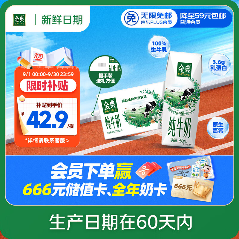伊利【新鲜日期】金典纯牛奶 250ml*16盒 3.6g乳蛋白 中秋送礼盒装